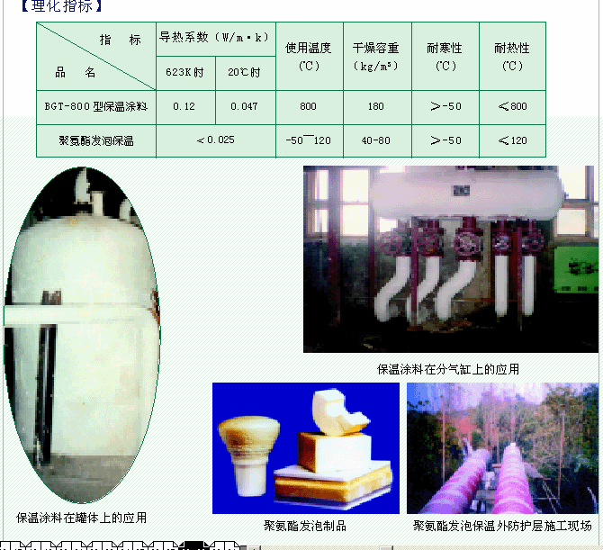BGT-800型復(fù)合硅酸鎂保溫涂料是一種新型無機(jī)微孔網(wǎng)狀輕質(zhì)高效保溫材料,產(chǎn)品屬于不定型膏狀,施工方便、絕熱性能好、不開裂、不粉化、不脫落。可廣泛應(yīng)用于化工、電力、冶金、石油等行業(yè)的高溫管道,尤其適用于異型熱力管網(wǎng)及閘、閥、球體的保溫隔熱。經(jīng)檢測,其各項(xiàng)性能指標(biāo)均優(yōu)于其它傳統(tǒng)保溫材料。